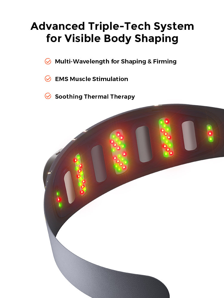 Multi-Wavelength Light Therapy for Shaping &Firming-108 LED lights (532nm+ 630nm+ 830nm) penetratemultiple layers of skin to reduce abdominal fat andsignificantly improve skin firmness.
