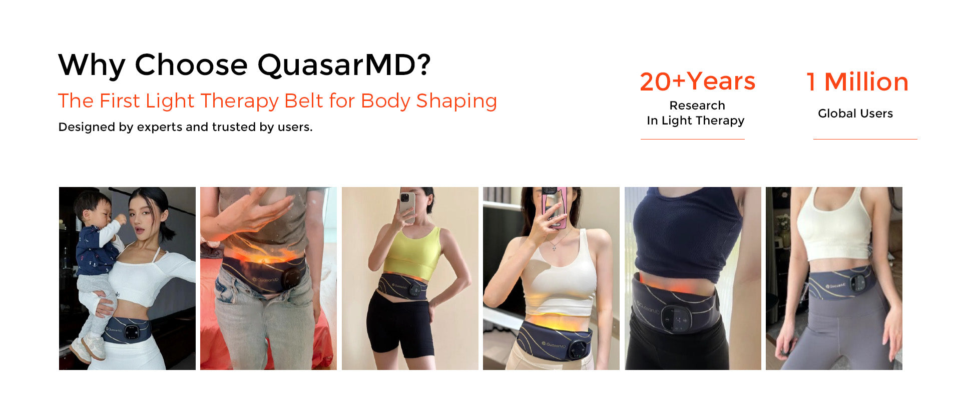 This product integrates three advanced technologieslight therapy,EMS, and thermal compression-into oneclinically developed solution.lt requires no surgery orrecovery time, yet effectively reduces waistcircumference,strengthens abdominal muscles, andfirms skin.